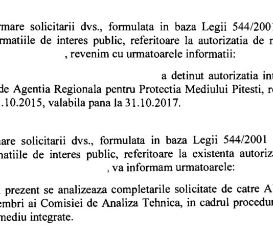 Fabrica de dero din nordul Ploieștiului nu are autorizație de mediu încă din data de 31 octombrie 2017! Informația a fost confirmată pentru ziarul Incomod printr-un document oficial de către Agenția pentru Protecția Mediului Prahova! Într-un răspuns transmis redacției noastre, APM Prahova spune că: