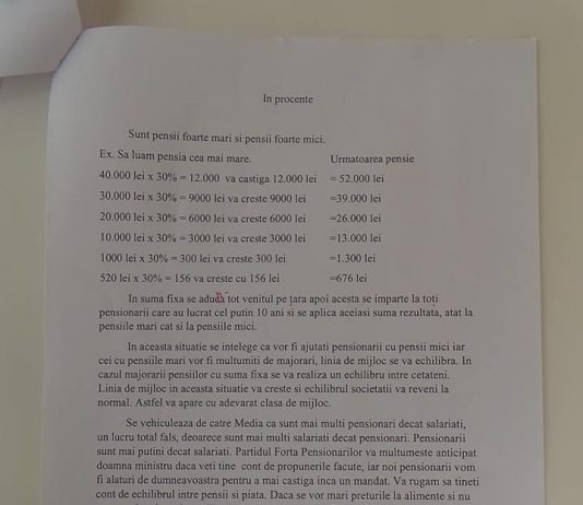 Partidul Forta Pensionarilor a facut propuneri pentru respectarea articolelor 16 si 47, din Constitutie, cu privire la asigurarea conditiilor decente de viata ale pensionarilor. (Paul D.).