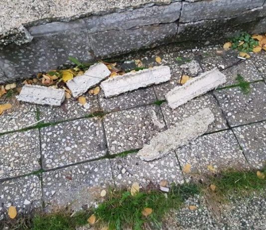 Bucăți mari din tencuiala unui bloc din Ploiești au căzut pe trotuar. Trecătorii sunt îngroziți că părțile desprinse din perete ar putea răni grav sau chiar omorî pe cineva!