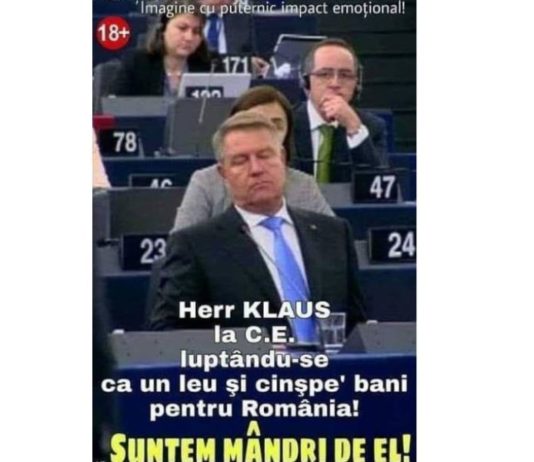 O fotografie face turul internetului. In imagine poate fi văzut rpreședintele României, Klaus Iohannis, iar mesajul este „Herr Klaus la CE, luptându-se ca un leu și cinșpre bani pentru România. SUNTEM MÂNDRI DE EL“. Internauții spun că imaginea ar fi fost surprinsă la negocierile dure de la Bruxelles. (R.C.)