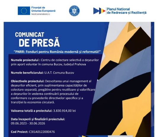 Articolul Comuna Bucov – „PNRR: Fonduri pentru România modernă și reformată” apare prima dată în Ziarul de Ploiesti, stiri Prahova.