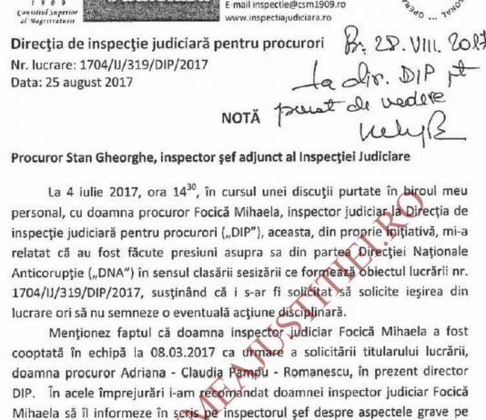 Conform adresei Inspectiei Judiciare transmise catre CSM in 11 septembrie 2017, pe care Lumeajustitiei.ro o prezinta in exclusivitate, presiunile din partea DNA au fost exercitate sub diferite forme, incepand de la un dosar scos pe numele inspectorului sef Lucian Netejoru in plin control al Inspectiei Judiciare la DNA si continuand...