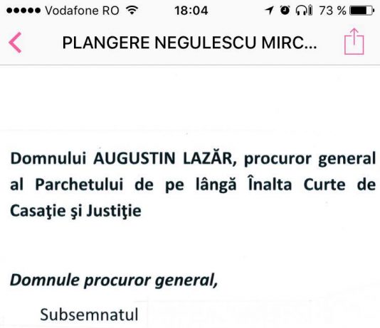 PARCHETUL GENERAL CONFIRMA PRIMIREA UNEI NOI PLANGERI PENALE IMPOTRIVA PROCURORULUI NEGULESCU MIRCEA