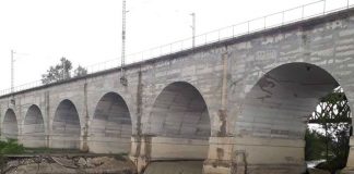 Un pod care sustine linia CFR peste raul Prahova, afectat de...