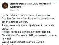 Suporterii FC Petrolul se mobilizeaza pentru tanarul lovit de tren, aflat...